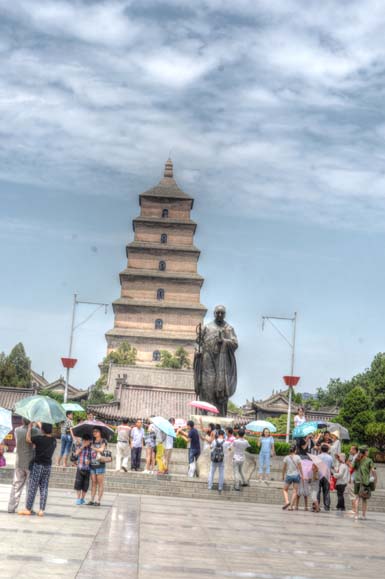 The next day I went to the Taichishan part of the mountain which was across from the hostel. I thought I was going to Confucius’s old academy, but had taken a wrong turn and wound up going up the mountain immediately skipping the academy. It was a long walk in and I finally reached a couple of Taoist temples run by a few old ladies. I got to the ticket office and paid 50 kuai to get into the main part of the mountain. The first temple complex was for Laomu cave, in which there were several incredible deities. The ladies in the temple wanted to know why Americans hated China and we immediately got into a heated conversation. They let me look around at the temple caves. There were people outside burning huge offerings in the urns. This temple seemed very active, with many people and paraphraneilia. I told the ladies Americans liked the Chinese, but they had to defend the islands that belonged to other countries like the Philippines. I said that most Americans felt good about Chinese people in general. Then they gave me a huge bag of fruit and snacks. I was confused why they gave me so much fruit and snacks to eat when I had to hike up the mountain. They told me it was an apple for peace, which pingguo for pingan sound the same in Chinese. So it was sweet for them to offer me so many things. I started to walk up to the next temple feeling quite weighed down by the snacks. I got to the temple upstairs with a huge temple for Laozi. The monk was very nice to me and when it started pouring down rain we got to chatting. I couldn’t always understand what he was saying. He gave me a dragon fruit and I ate it. He saw I had a huge bag of snacks. I have no idea why he gave me the fruit after I told him about the snacks. I thought it was funny. The rain poured for a while and he tried to talk me out of hiking the mountain, but I went anyway. I’m happy it was raining because it is so much cooler and nicer to enjoy the weather that way. Hiking up the mountain there were many other Taoist temples, and one in particular that sat on a waterfall. After several hours of hiking I made it to the 1400 ft summit. It was completely overcast. I met up with the same guy I had met the day before and he followed me around like a puppy again. Eventually we split ways when we had found the trail. I ended up following the advice of two girls who said they were going down the mountain. Apparently they were wrong, and we ended up at a cave. The water started pouring so badly that I stayed in the temple with a few ladies and we talked for a long time about university life in the US where their friends kids were at. We talked for nearly a half an hour about the schools and about my life, simple questions usually, always the same kind of stuff. They are always curious about me when they realize I can speak Chinese. After the rain the clouds had broken and I could see the view. It was an incredible view of the cityscape of Dengfeng below. I hurried down the mountain as fast as possible because of the rain, and taking a few photos of the now visible landscape. I met up with my friend who invited me to dinner that night. We spent a few hours getting off the mountain crossing the ferocious rivers. We went to hotpot. He got a bottle of wine. We went to get foot massage. I fell asleep. He tried to forcibly kiss me and I pushed him away. It’s terrible how men act when they are pushy and have no manners. Men need to learn how to get consent or at least ask. Awful manners. I was in a bad mood after that. I fell asleep at the hostel.